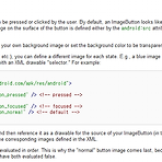 사전에 밝혀두는데 저는 소스를 따로 첨부하지 않을 것입니다. 소스를 한번 쳐 본다는 것에 의의가 있다고 생각합니다. 복사 - 붙여넣기로 만들었다면 그 때는 편하겠지만 장기적으로 생각하면 결코 좋지 않습니다. 버튼은 눌렸을 때와 눌려지지 않았을 때의 구별이 되어야 합니다. 그러므로 둘의 눌렸을 때와 눌리지 않았을 때의 이미지를 다르게 하여야 하죠. 여기서 좋은 것이 있는데 바로 Selector입니다. 위 사진은 안드로이드 디벨로퍼 페이지 입니다. (http://developer.android.com/reference/android/widget/ImageButton.html) android ImageButton라고 구글에 검색하니 바로 나오더라고요. 본문을 읽어보시면 아시겠지만 XML 파일 하나 만들어서 저..
